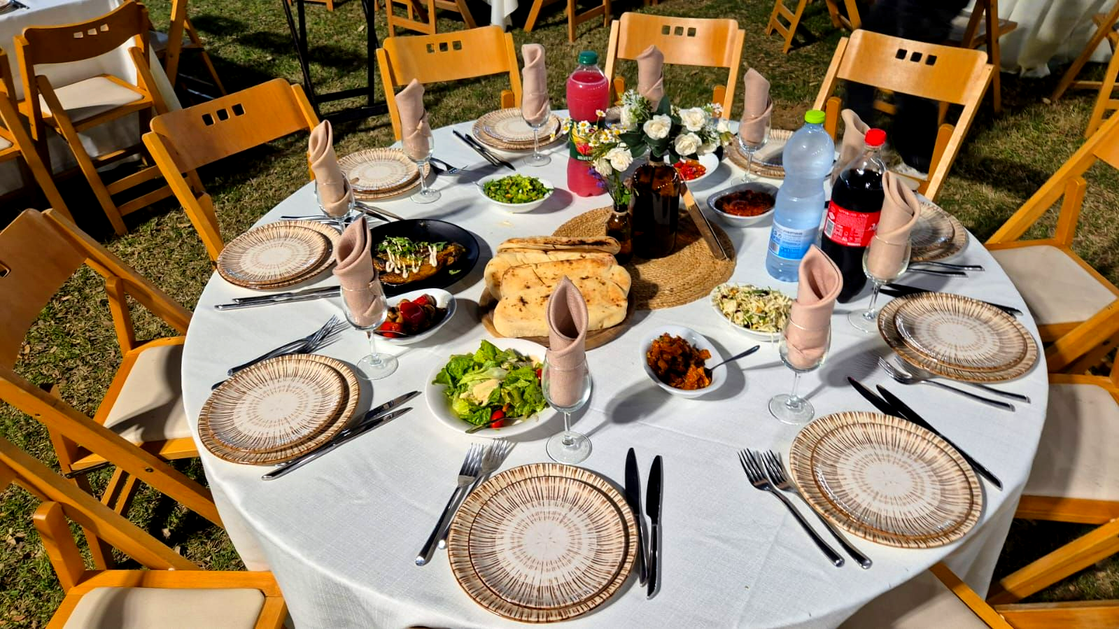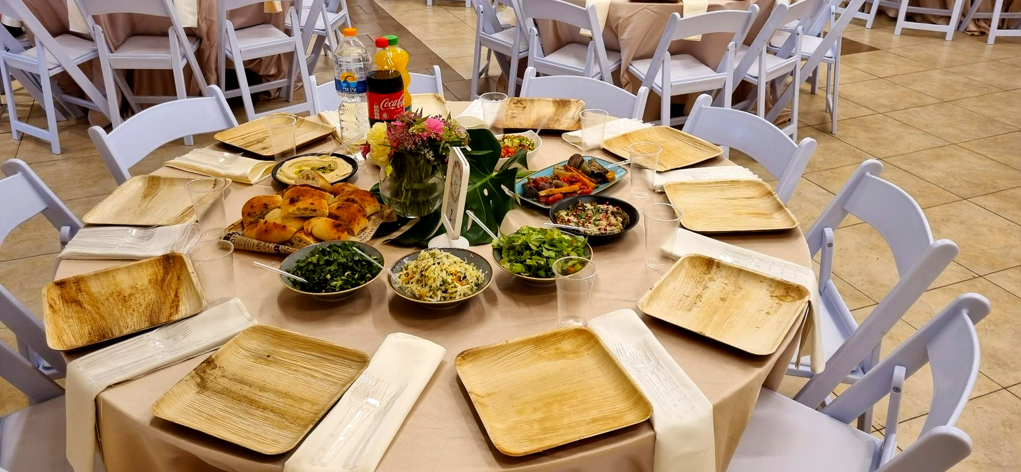 👨🍳 שף אומן ןצוות מלצרים 🍴 מפות וכלים חד"פ מהודרים 🥗 חיתוכי פירות העונה 🥤 שתייה קלה חופשית